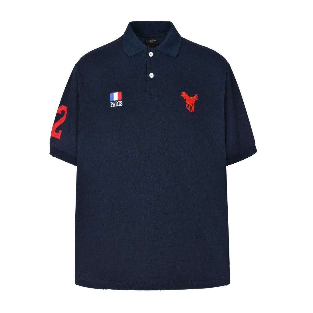 War Horse Lapel Embroidered Letter Print POLO SHIRT