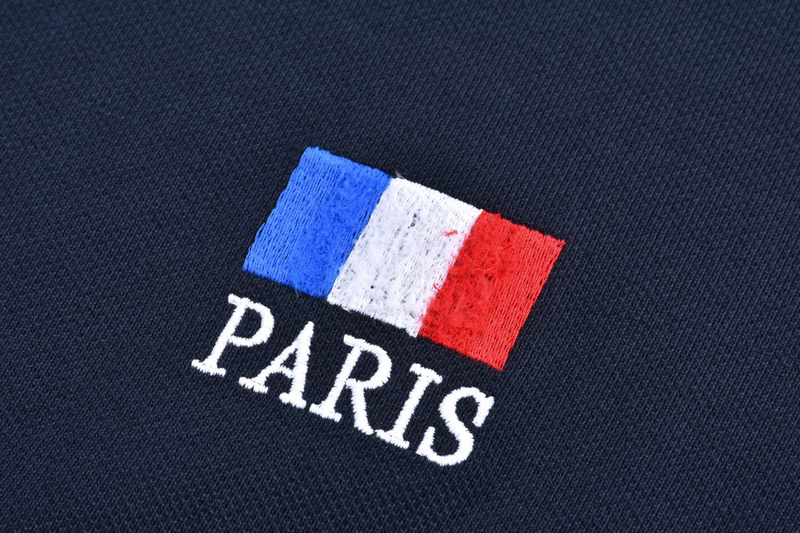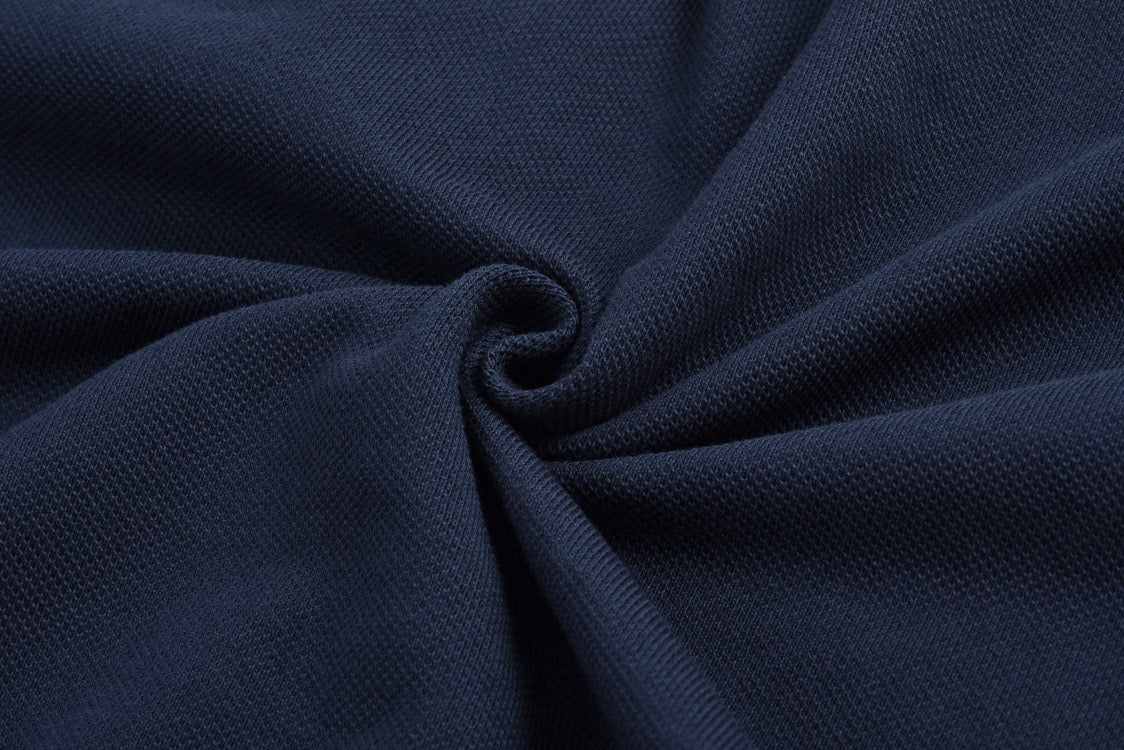 Process description: The fabric is 32s+40s combed cotton large eyeball plain cloth, and the finished product retains the honeycomb mesh bead pattern. The front panel is printed with eight-claw machine screen embroidery, and the paper pattern is used to position the printed full-width embroidery pattern letters, and it is equipped with natural shell white butterfly shell round edge buttons to restore the quality.