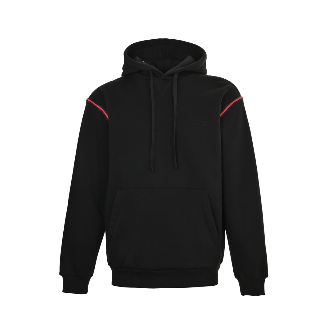 350g 100% cotton terry fabric, washed and treated with heavy wool feel. The upper body is fluffy, soft and has the skin-friendly feel of wool. Red and green webbing design on shoulders, sleeves and underarms. The double-layer design inside the hat is thick and upright. Exquisite embroidery on the chest. Dropped shoulders, os wide version, red accessories, hand-stitched labels, and hemming strips on the inner lining of the whole garment.