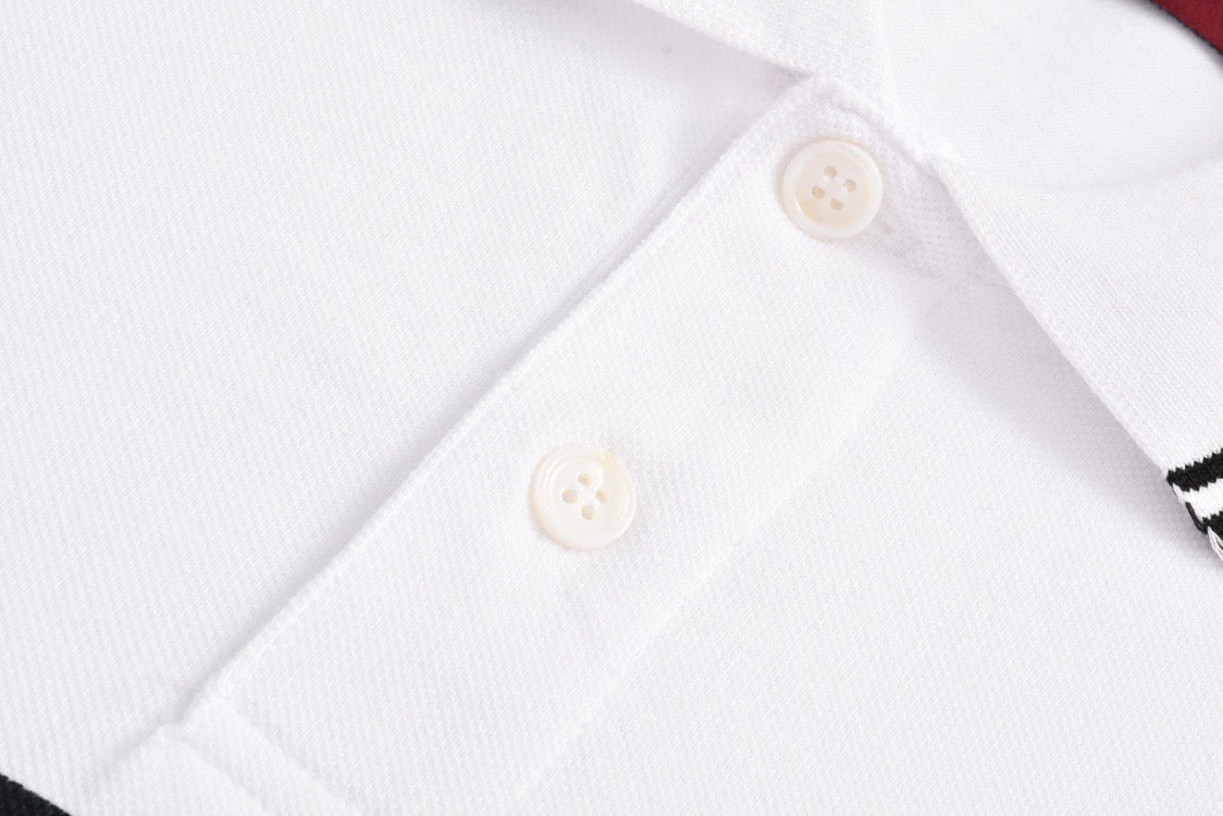 Striped print short sleeves focus on basic silhouettes and classic details, perfect for both daytime and evening wear. Crafted from stretch cotton piqué, this casual shirt features a logo stripe print running through the center.