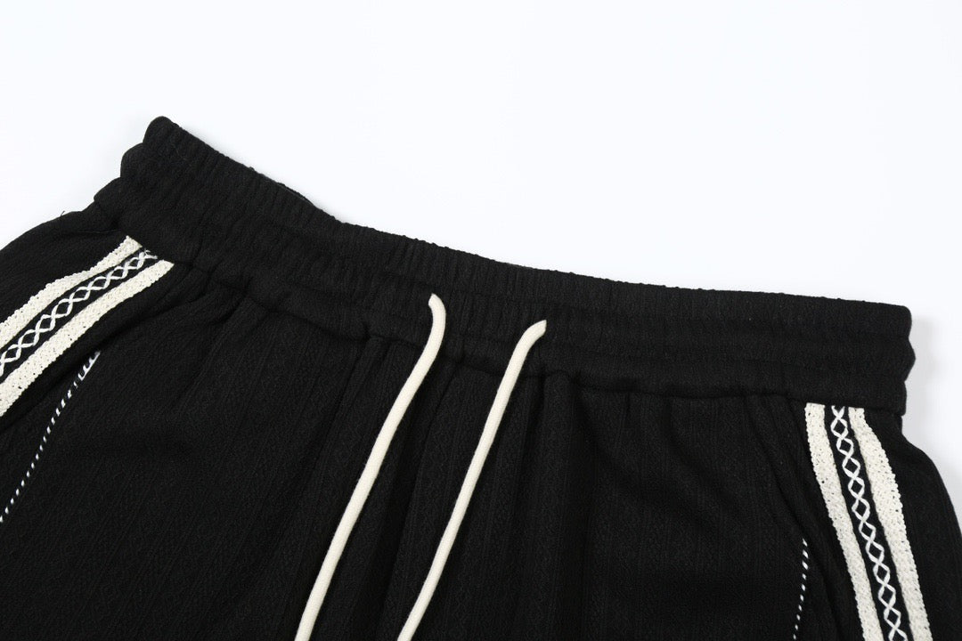 The twisted texture shorts with spliced webbing are simple, stylish and elegant, comfortable and breathable, a perfect match.