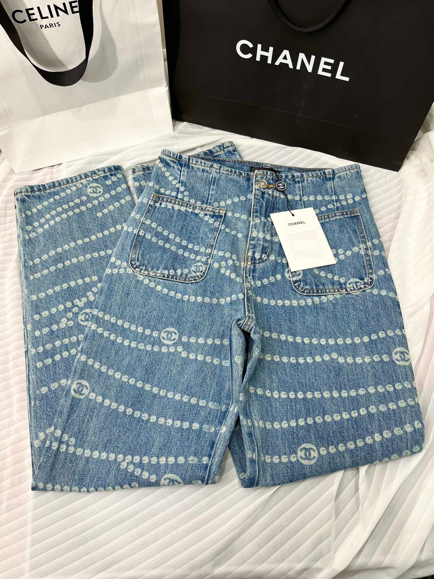 Polka dot laser burning craft!! A must-have item for white, rich and beautiful women. Looks great when worn! Original custom-made high-weave organic cotton denim with a soft and delicate texture! Nostalgic retro wash, fashionable and high-end style! Original custom-made perfect pants shape, looks super slim when worn! Size: 36.38.40
