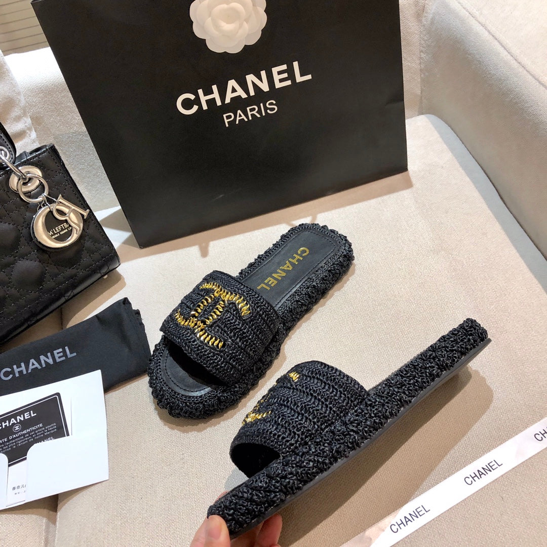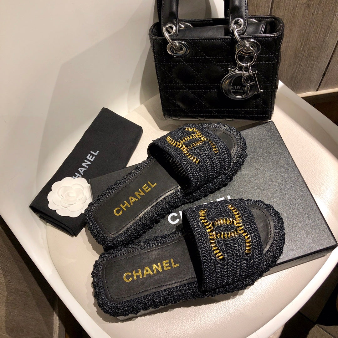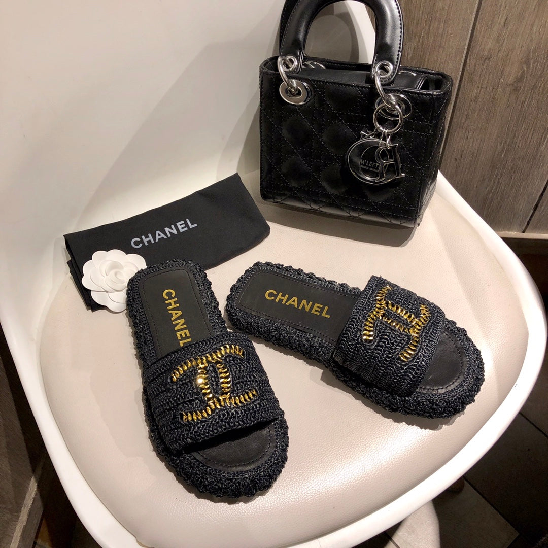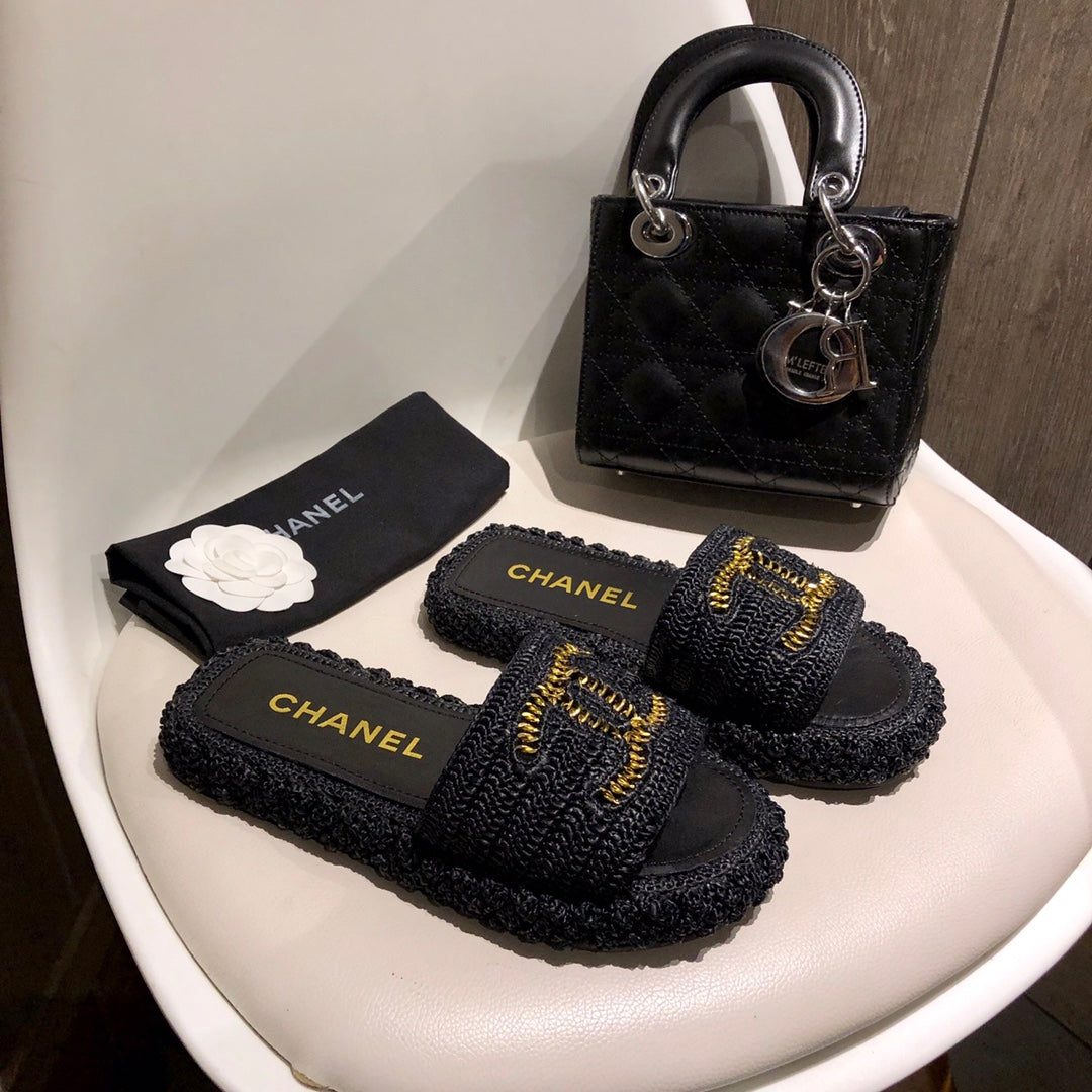 1️⃣The upper is made of hand-woven raffia, very comfortable!2️⃣Water-dyed sheepskin lining and foot pads[Size] 35-41[Color] Color: Black Apricot)