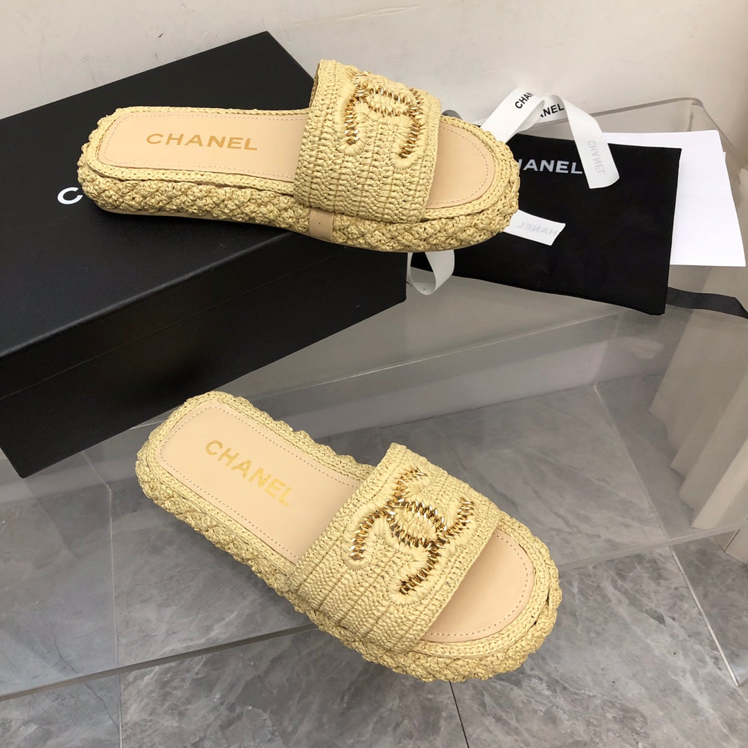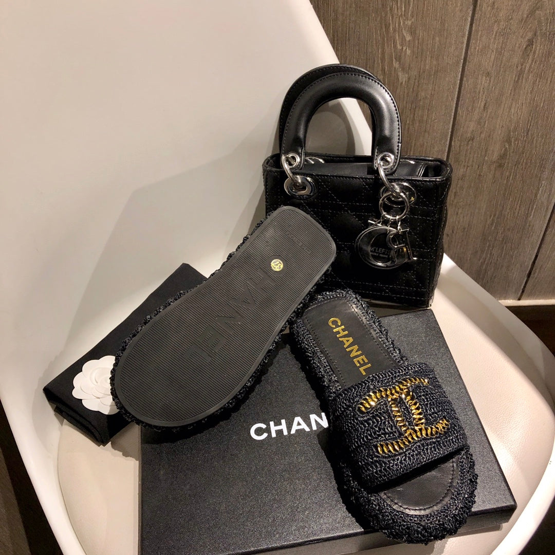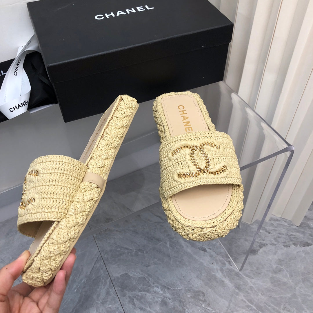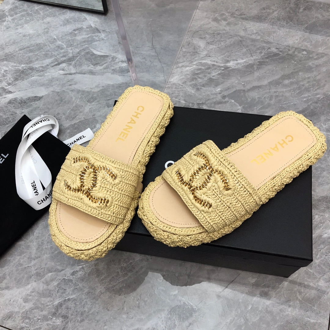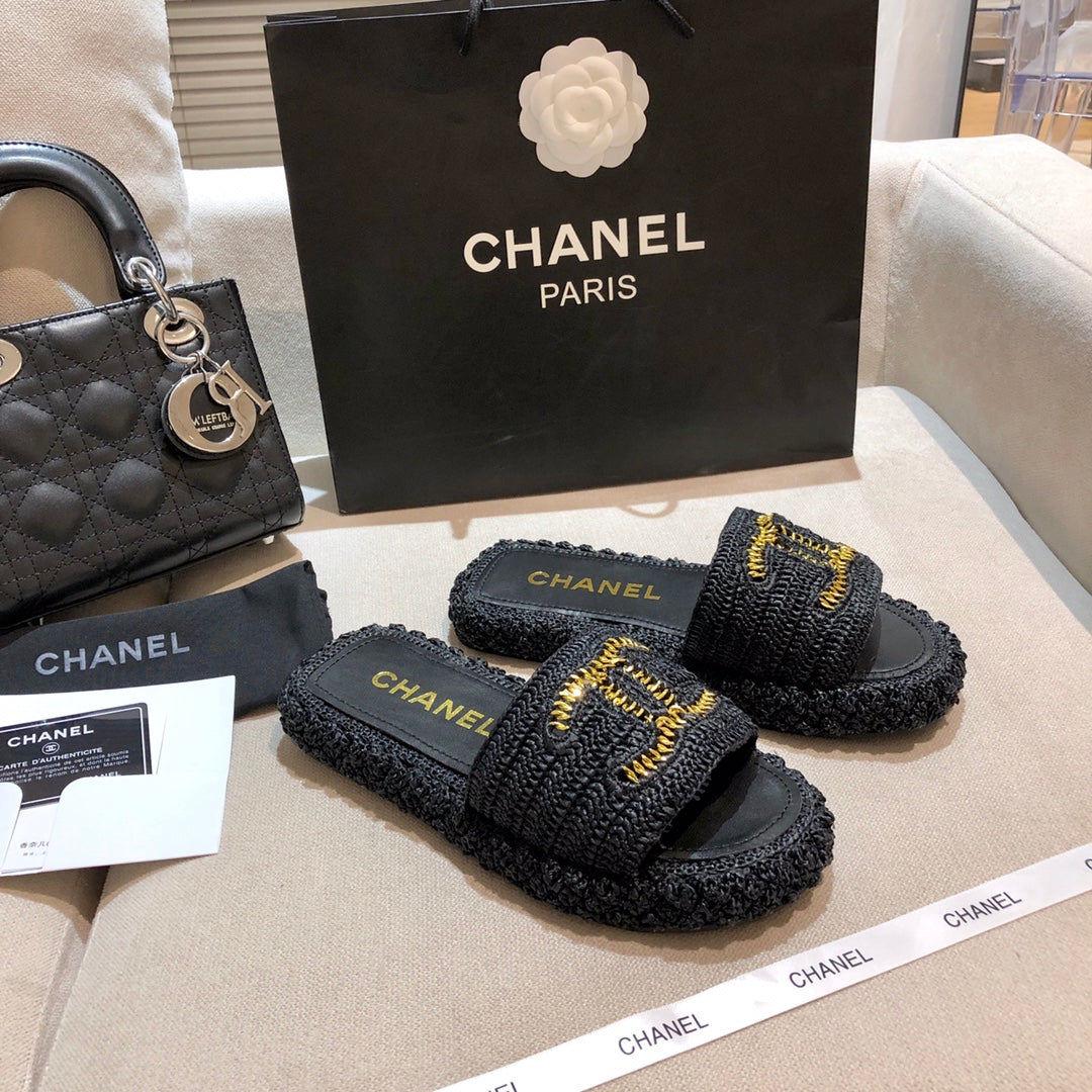 1️⃣The upper is made of hand-woven raffia, very comfortable!2️⃣Water-dyed sheepskin lining and foot pads[Size] 35-41[Color] Color: Black Apricot)