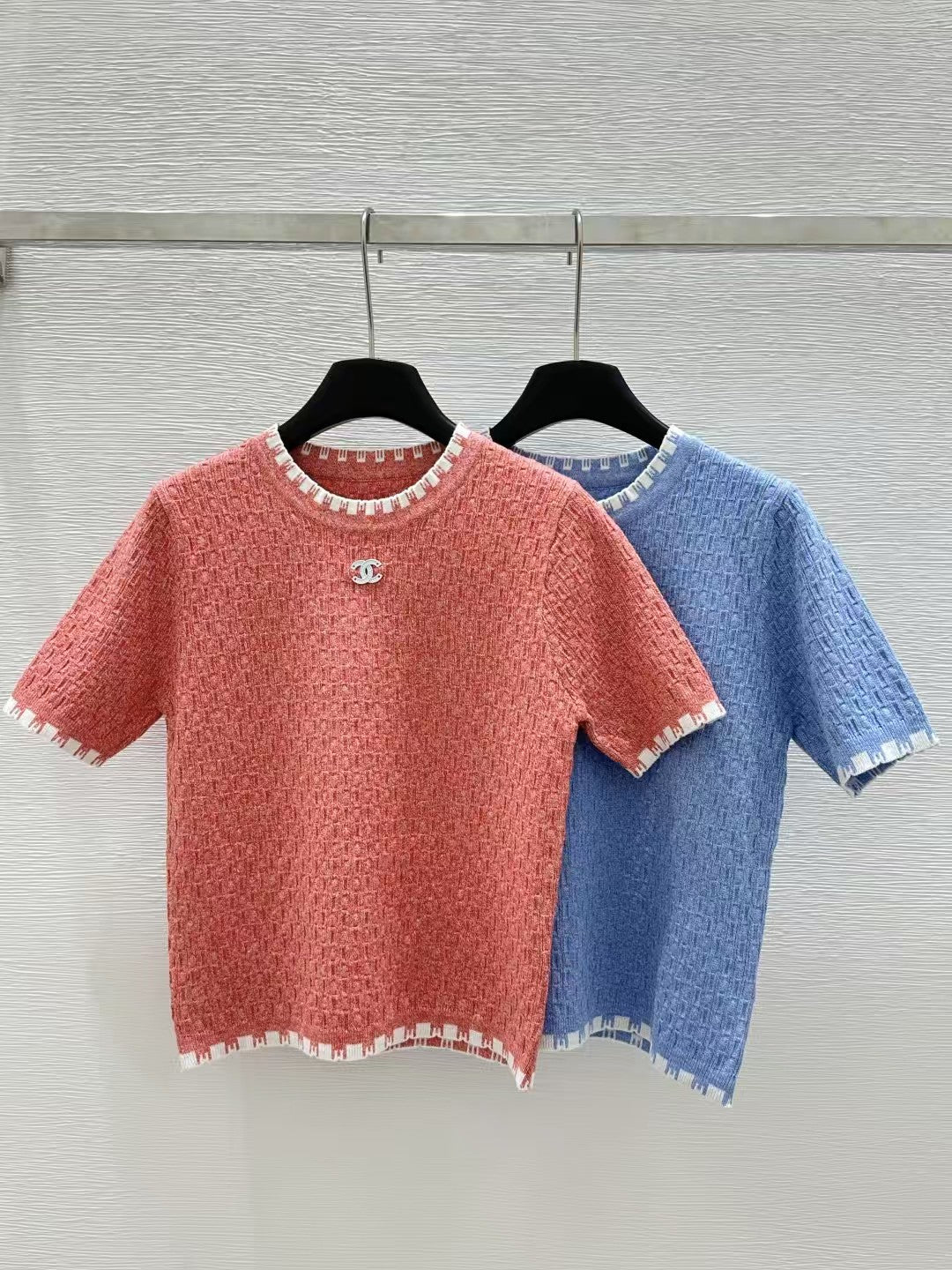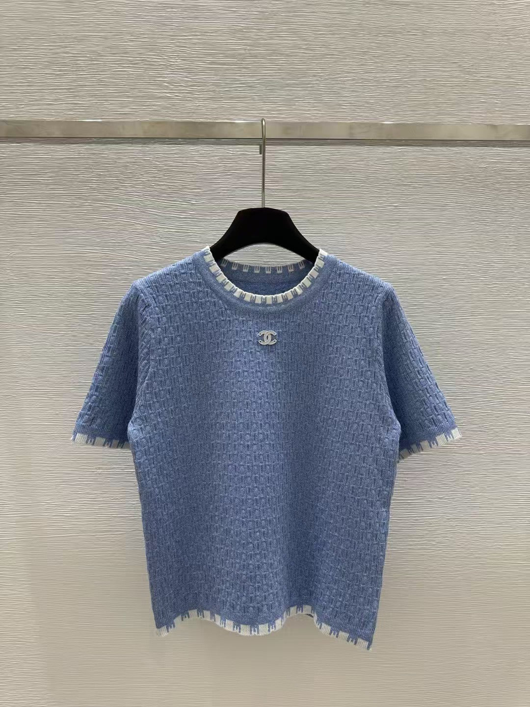 Round neck contrast knitted short sleeves