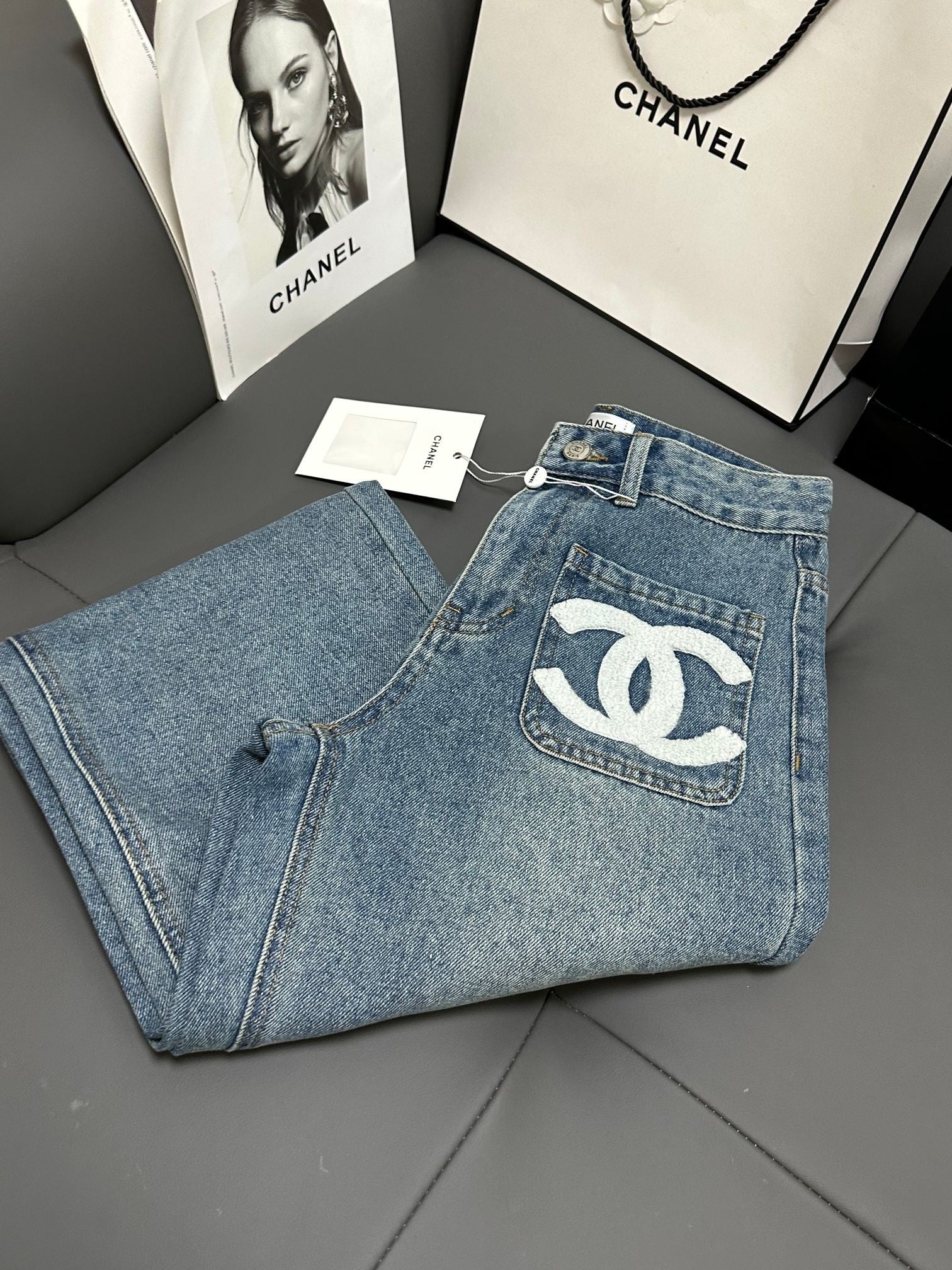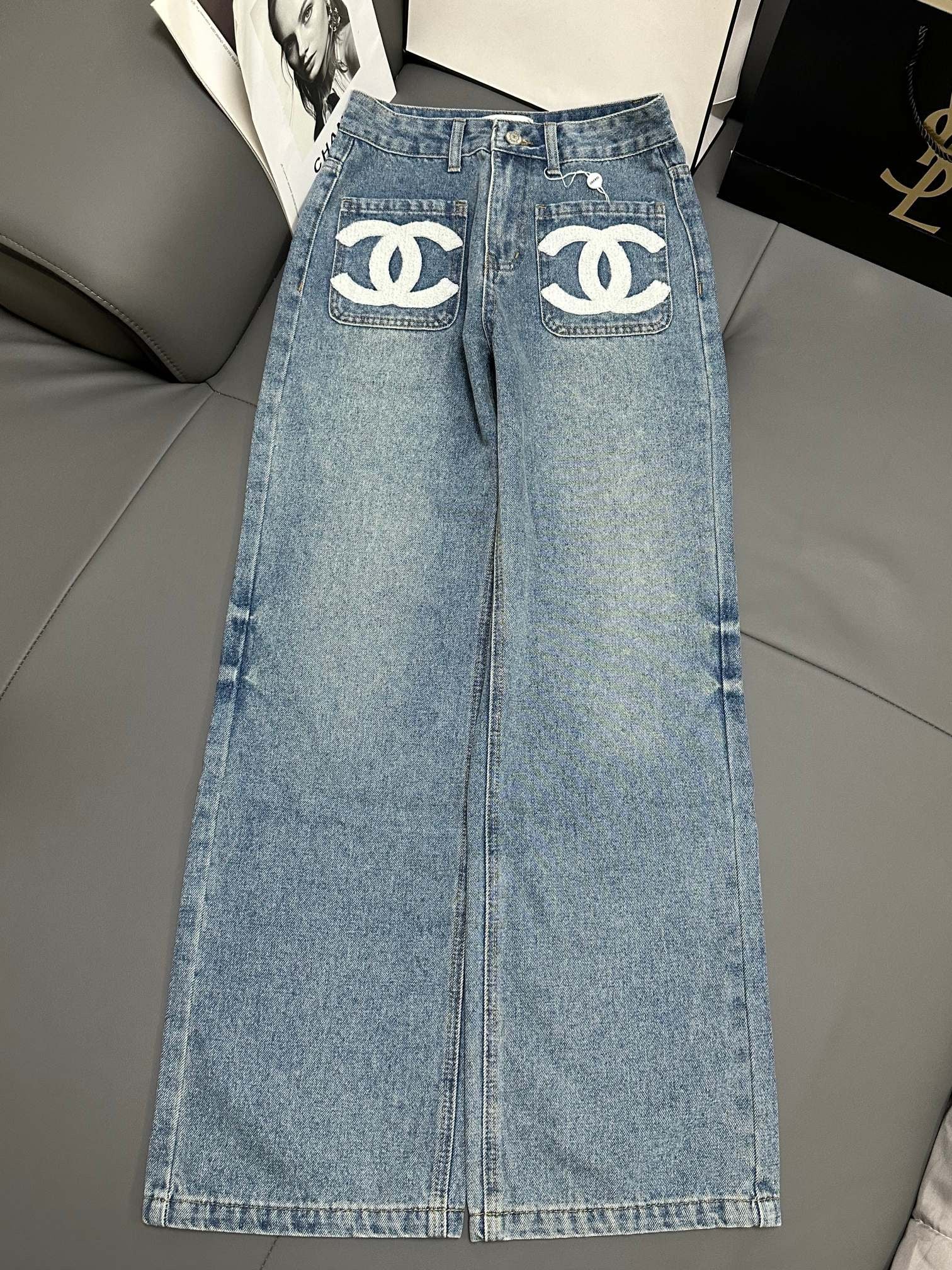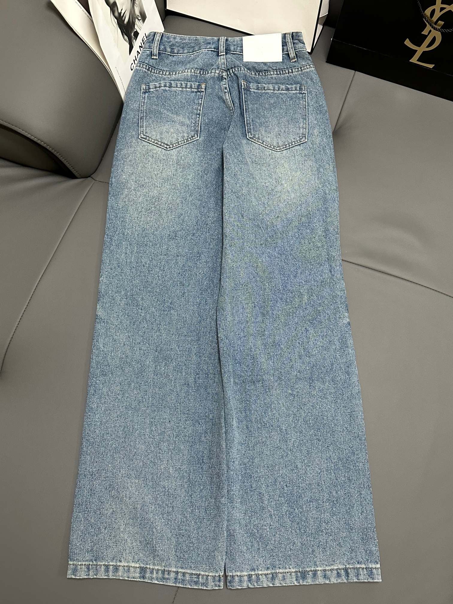 Made of siro-spun fabric, customized hardware + leather tag, double enzyme classic washed blue color fixation, the fabric is very comfortable and soft, fine workmanship, front pocket embellishment, high-end quality, super positive version, great effect on the body, fashionable and versatile, full of high-end feeling.